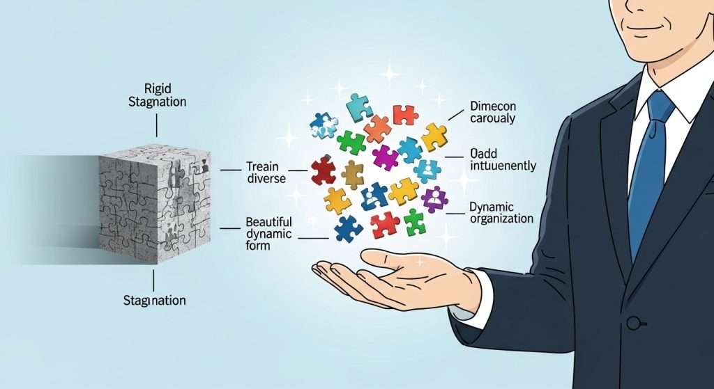 ドラッカーは、知識労働者のマネジメントにおいて、「異質なものを意図的に組み合わせる」ことの重要性を説きました。イノベーションとは、「既存の知識と、異なる視点を持つ人々の知識」が交わり、新しい知恵を生み出すプロセスです。HRの役割は、「異なる専門性や価値観を持つ人が、安全に、そして積極的に交流し、意見を戦わせる場」を設計することです。