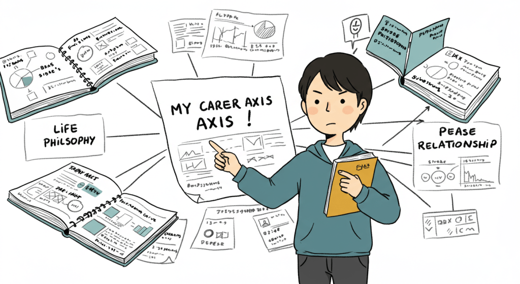 しかし、これらの「観」はバラバラに存在しているものではありません。それらが有機的に結びついたとき、初めてあなたの就職活動におけるブレない「キャリアの軸」となります。今日の記事では、これまでのワークを統合し、あなただけの強固な軸を確立するための実践的な方法を解説します。