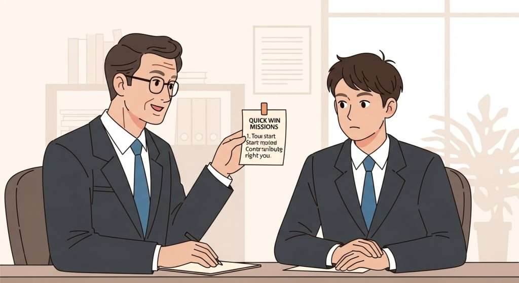 入社直後、複雑なコア業務を任せる前に、「短期間で完了し、組織に明確な価値を提供する」スモール・ミッション(小さな貢献課題)を意図的に設定します。