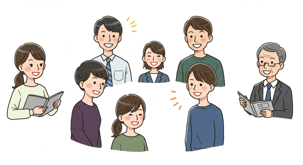 内定者懇親会や社員とのランチ会など、カジュアルな場で社員と交流する機会を設けることは非常に有効です。堅苦しい場ではなく、仕事のリアルな話や社員の価値観に触れることで、入社前に抱く組織への不安を払拭できます。内定者同士が交流する機会も設けることで、入社前に同期との絆を深めることができ、入社後の孤立感を防ぐことにも繋がります。